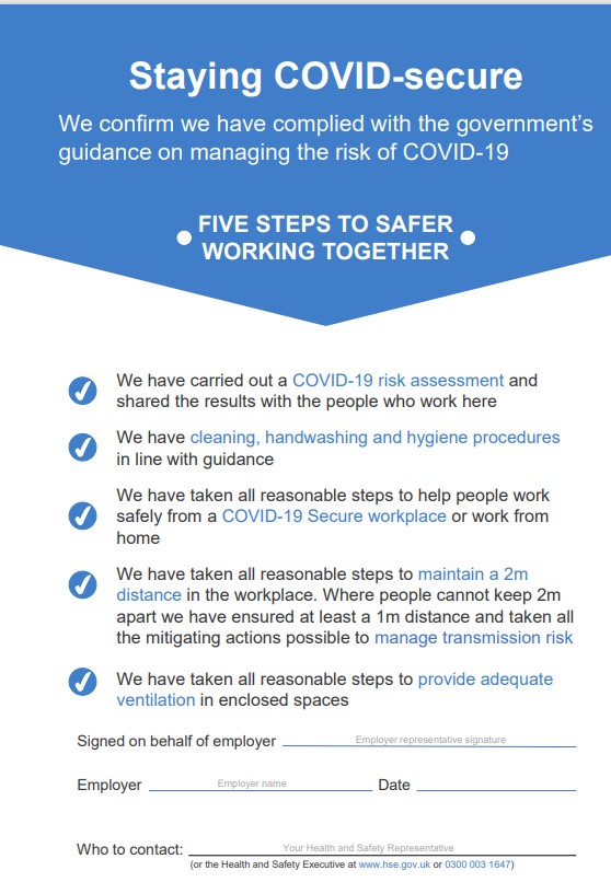 The government has provided businesses with a notice to display to show you have made your workplace COVID-secure.