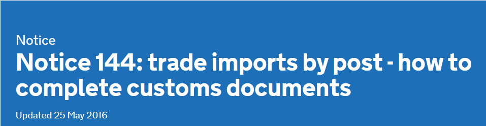NOTICE 144: TRADE IMPORTS BY POST HOW TO COMPLETE CUSTOMS DOCUMENTS